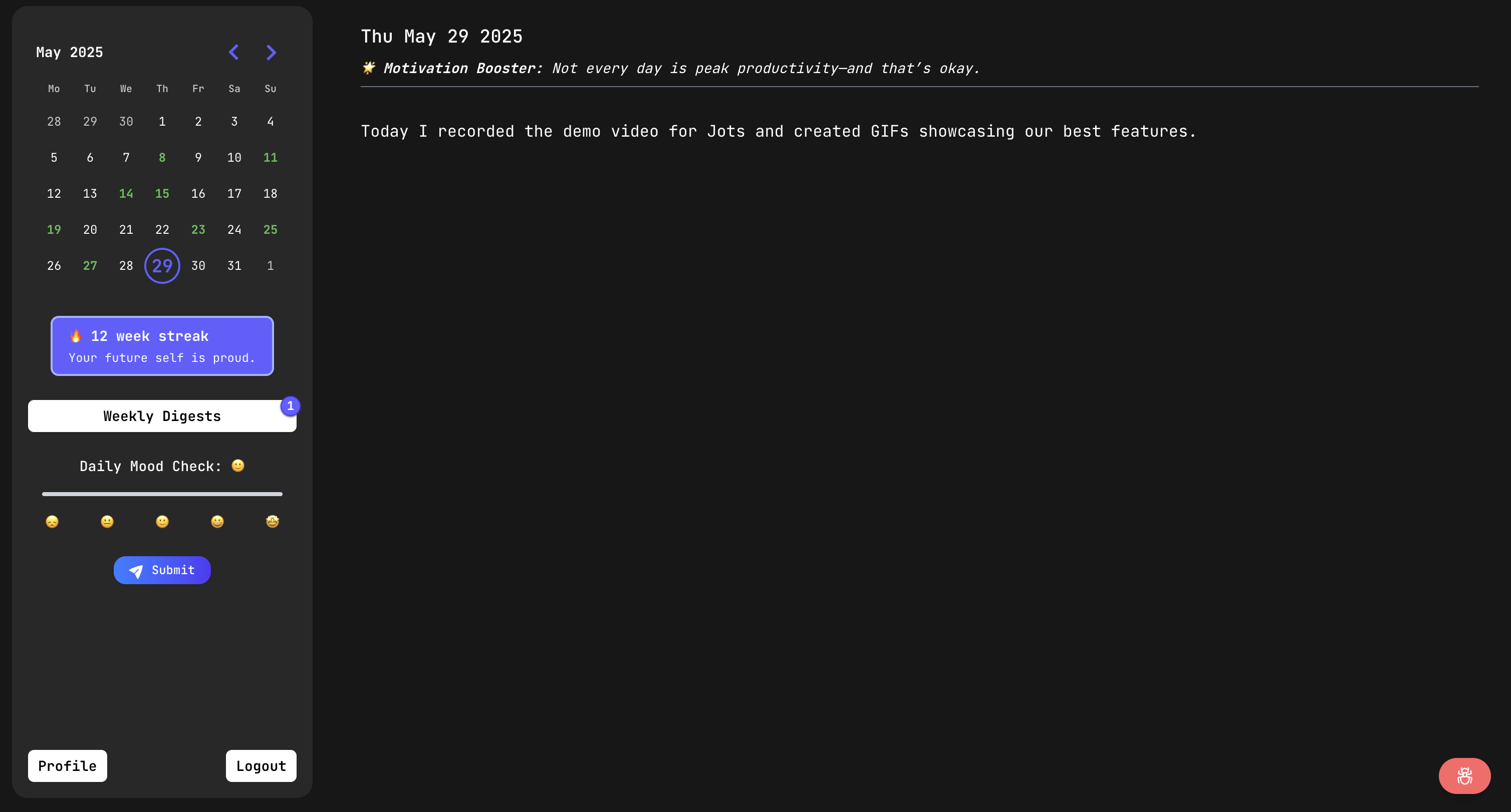 Jots是一款专为开发者设计的记账应用,旨在帮助你加速实现职业目标。无论你是在争取升职,还是想提升技术技能,Jots都能帮助你记录进展、进行反思并采取行动。作为早期用户,你今天就可以免费使用我们的所有功能。